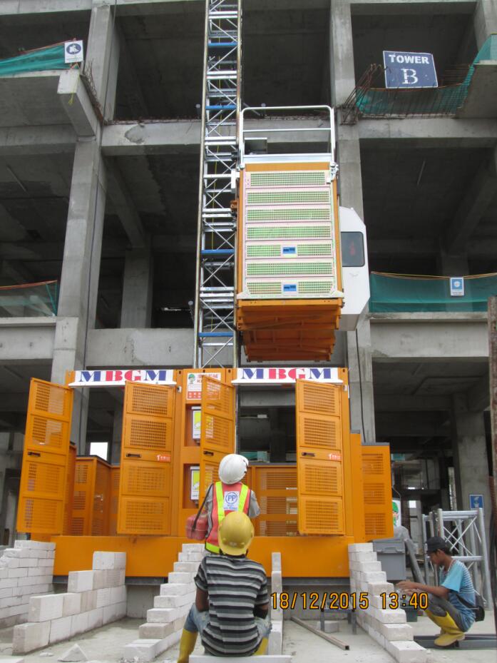印尼雅加達(dá)的施工工地,該項目采用我公司生產(chǎn)的SC-K型領(lǐng)航者施工升降機(jī)